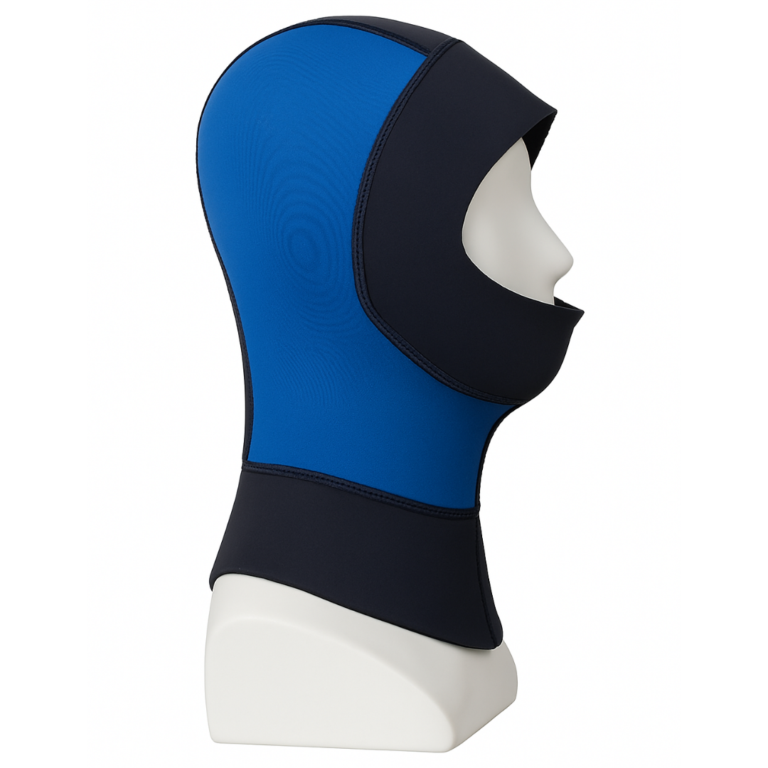 A thick, thermal 5mm hood designed for cold-water diving. Provides excellent heat retention, a snug comfortable fit, and reliable protection around the head and neck.