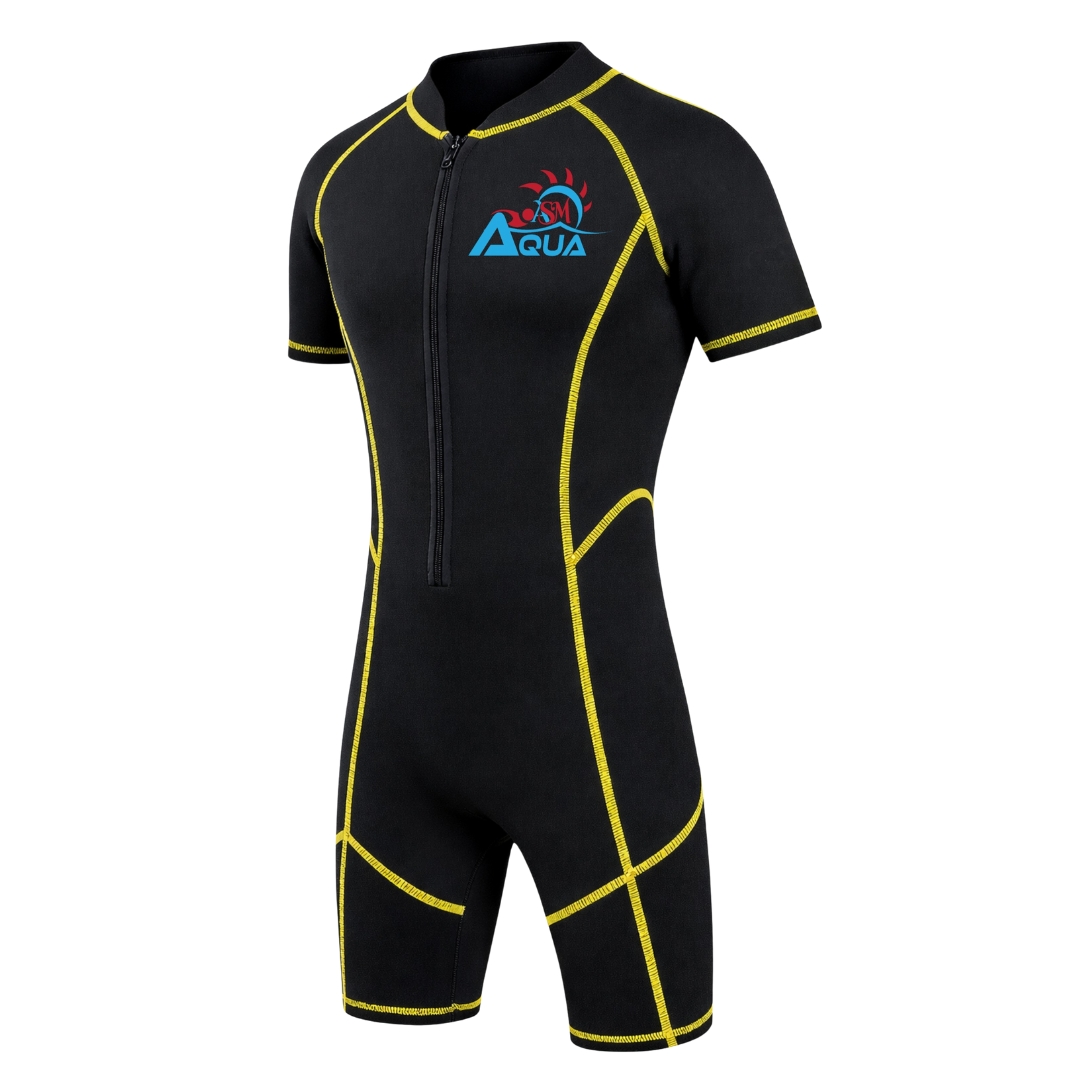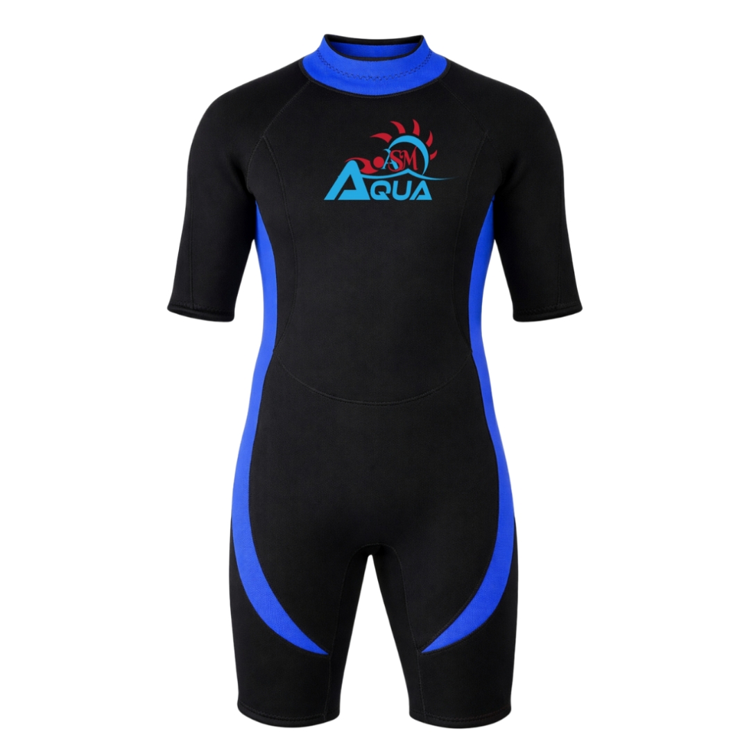 This 3mm half neoprene suit provides comfortable thermal protection and flexibility for warm-water diving and water sports. The ergonomic fit allows easy movement, while the short-sleeve, short-leg design ensures comfort and convenience in active water activities.